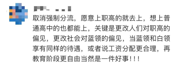还有不少网友认为,更重要的是加大对职业学校的投入与管理,以改变人们对于职高的偏见——